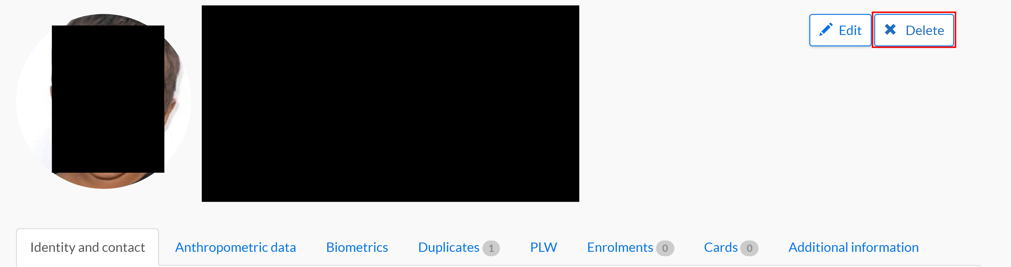 Note: If the identity is registered as the head of a household, you must change their role before you can delete them.