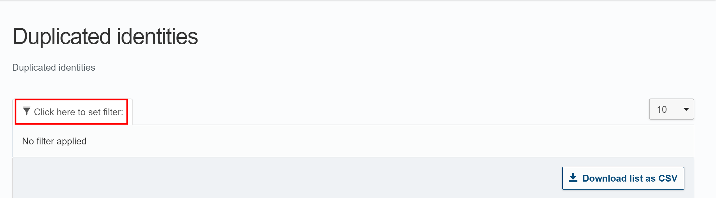 In the Duplicated identities page, click to find the identity you need to deactivate.