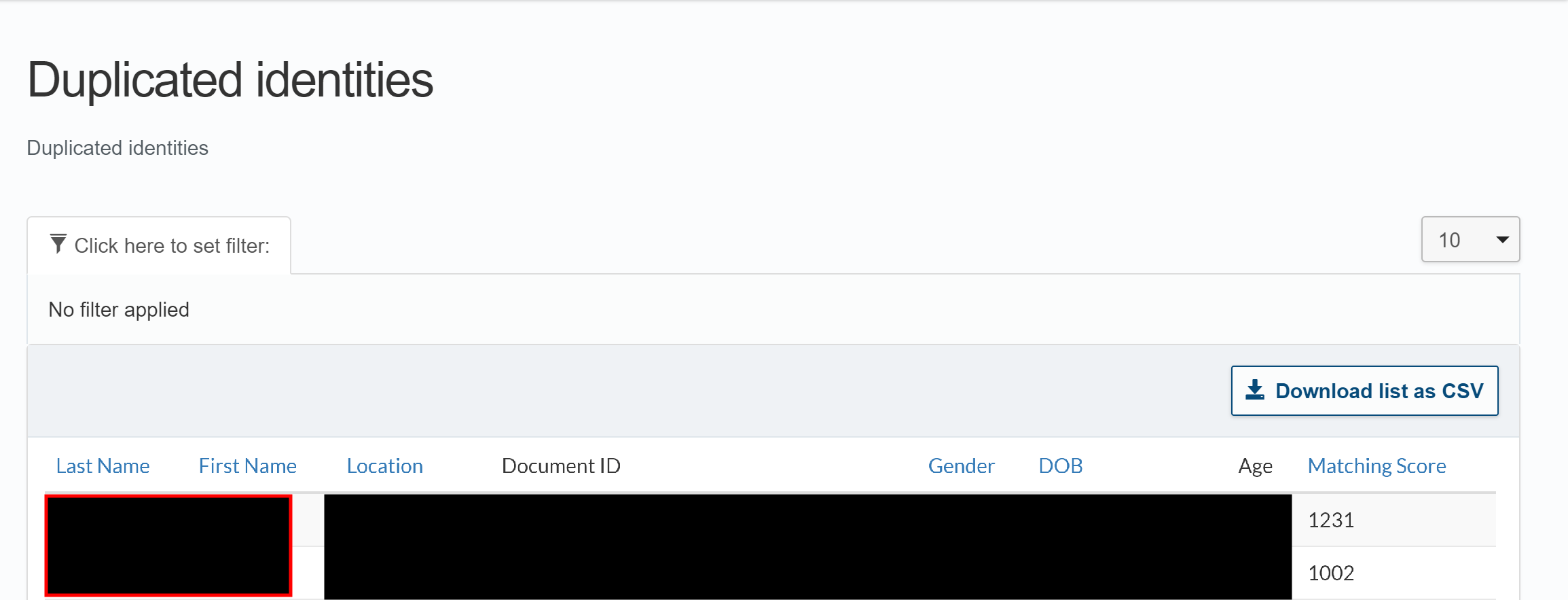 Programme is responsible for deciding what to do with duplicated identities. They may or may not require checking these identities in the field, and this decision is made in accordance with the Country Office SOPs for deduplication. Programme is normally responsible for deactivating duplicated identities. Check with your Country Office to confirm who in Programme is responsible in your country.