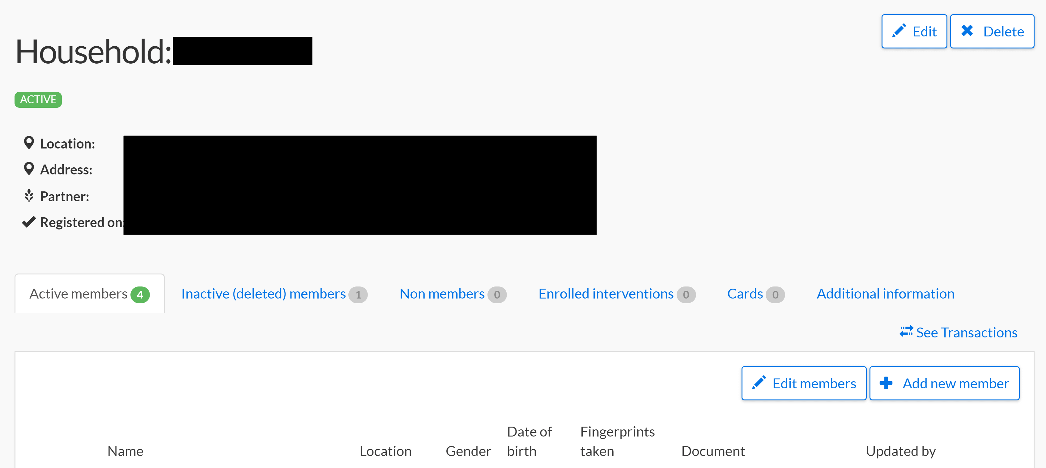 The Household information page is displayed. Confirm that the identity is no longer displayed on this screen.