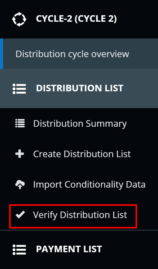 Distribution lists define which beneficiaries will receive entitlements during a distribution cycle. Distribution lists must be verified every cycle before they become active. The same user cannot create and verify the same distribution list.