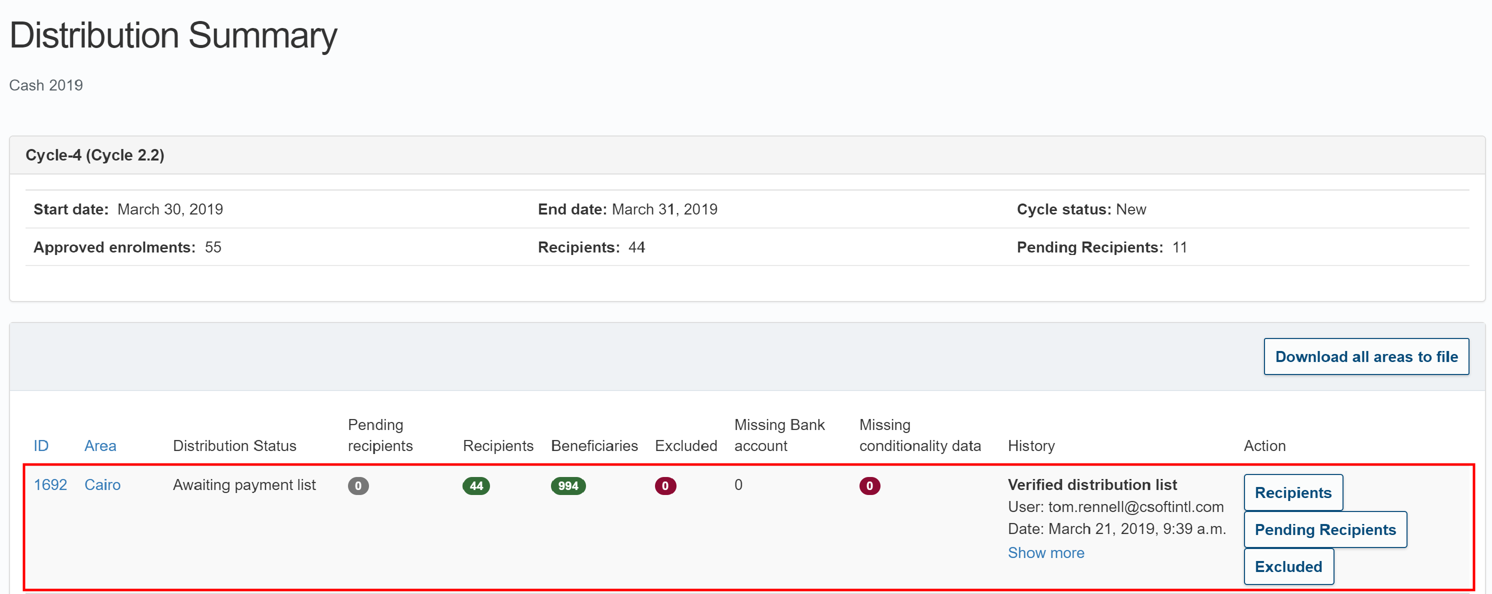 In the Verify Distribution List page, click the checkbox for the distribution list you want to verify, then click . You can view the recipients in a distribution list before verifying by clicking on the area name.