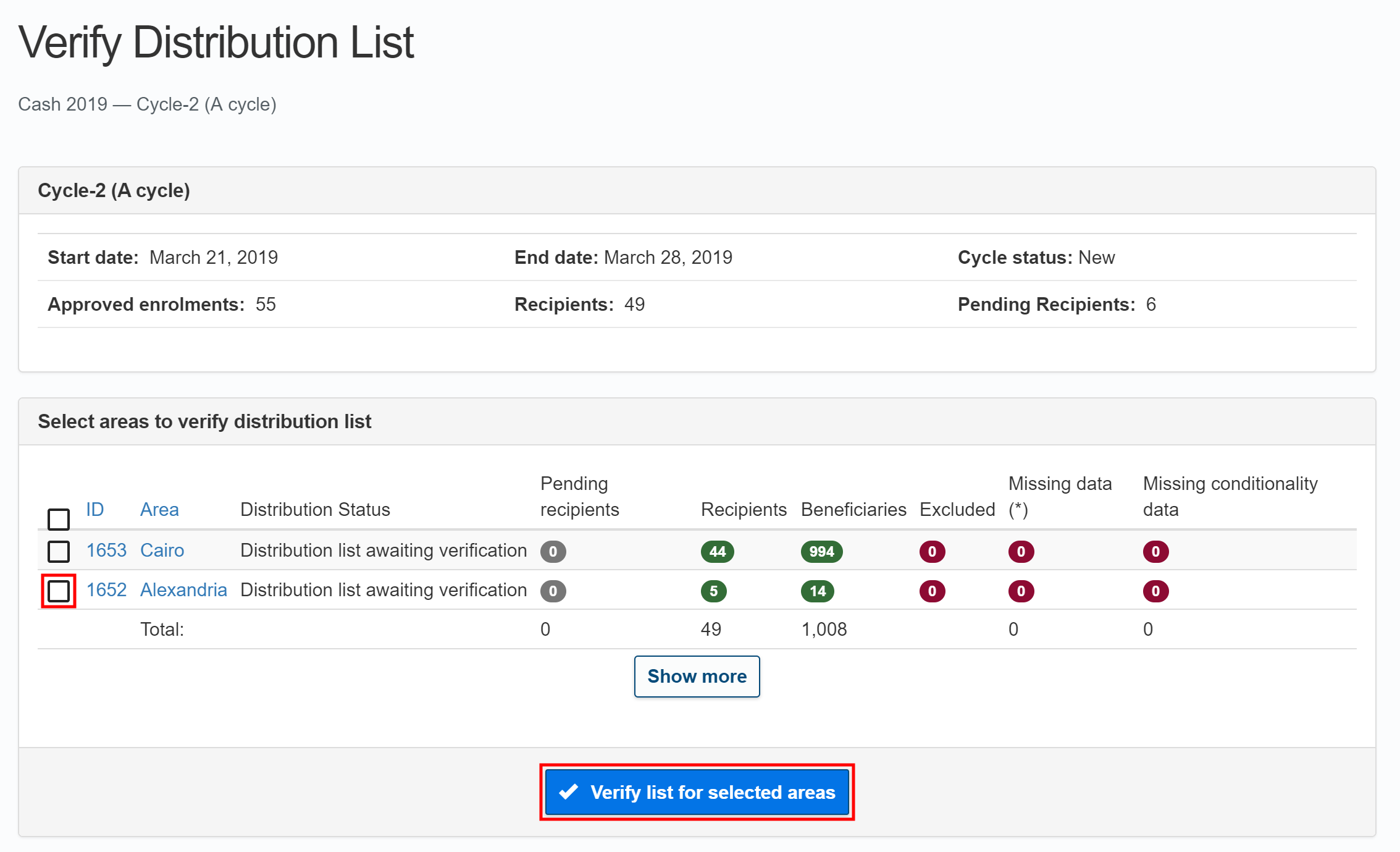 - For conditional interventions, conditionality data for all beneficiaries must have been uploaded to SCOPE.