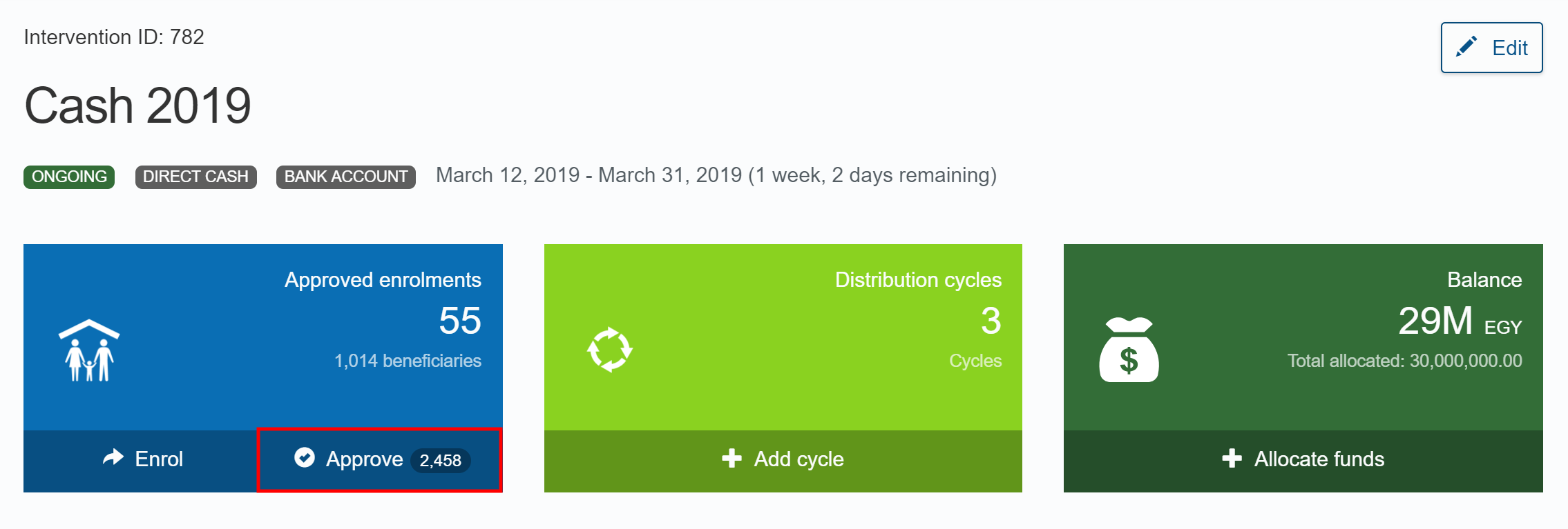 Once beneficiaries have been enrolled in an intervention they need to be approved as enrolments by a senior staff member.