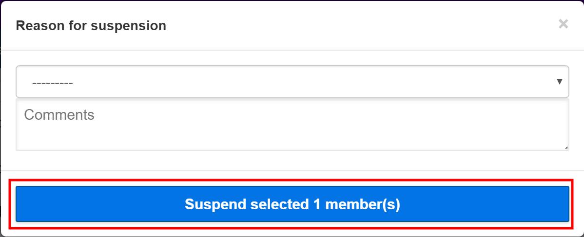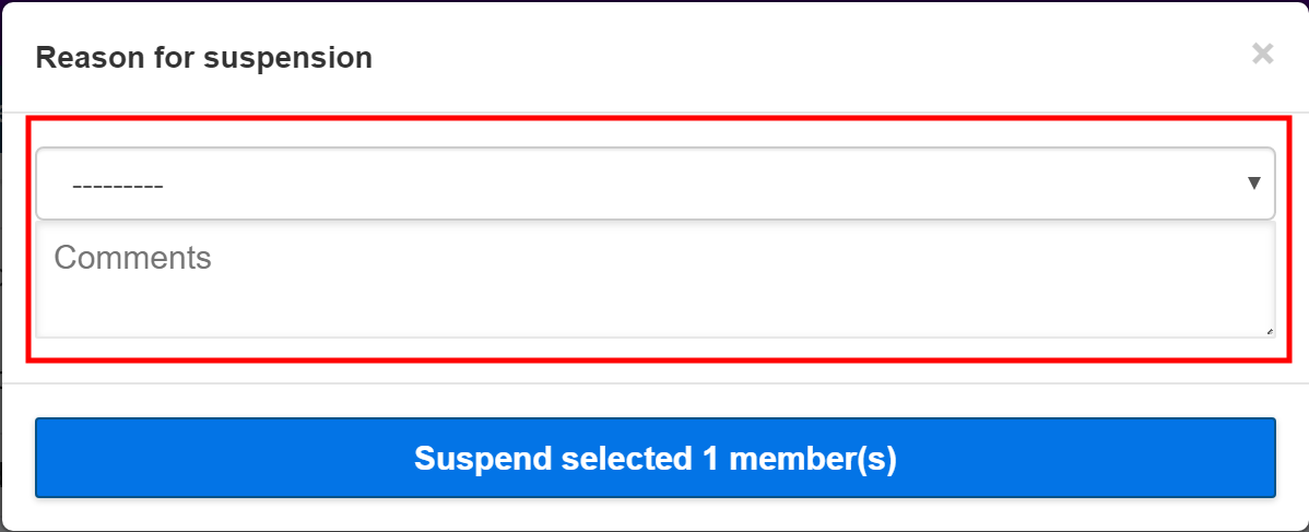 In the Reason for suspension pop-up window, select a reason from the drop-down list and add a comment if required.