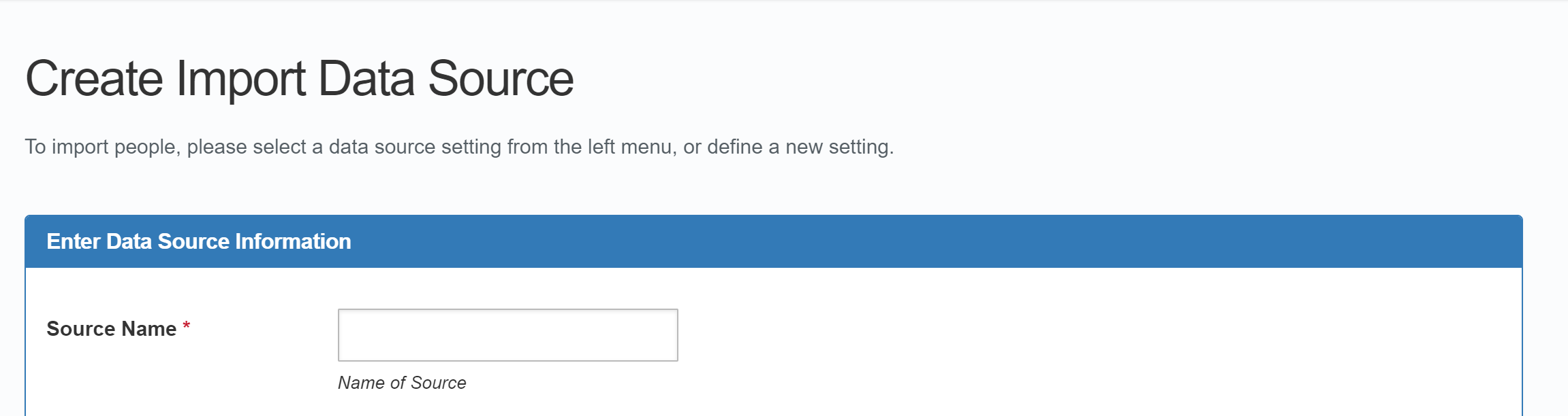 In the Create Import Data Source page, enter a name for the data source and enter the settings for the external data source.